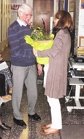 Die Vorsitzende des M-LV-NRW Ruth Püttmann gratuliert Herrn